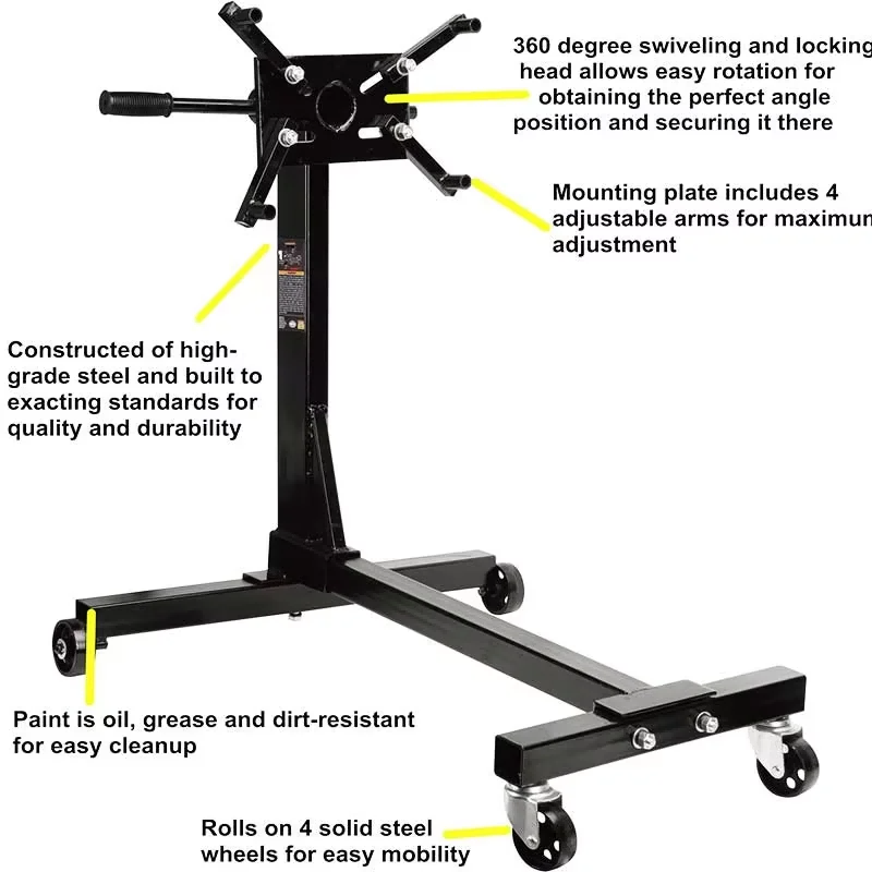 This engine stand is the essential upgrade for professional automotive repair. Built from premium high-grade steel, it is engineered to meet the extreme demands of engine overhauls, confidently supporting engines up to 1000 lbs (approx. 450 kg) with rock-solid stability.
