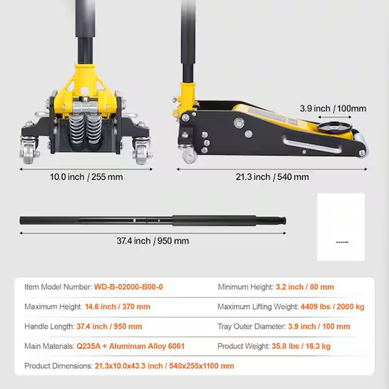 • 4400 lbs (2000 kg) Lifting Capacity: Despite its heavy-duty rating, this jack is built from a high-strength aluminum-steel hybrid, delivering full power.