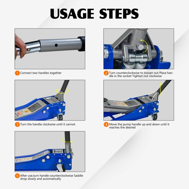 • Immense Power: 6,600 lb (3 Ton) Capacity With a robust 3-ton (6,600 lb) rated capacity, this jack effortlessly handles a wide range of vehicles, from sports cars and sedans to SUVs and light trucks, providing secure and stable support every time.