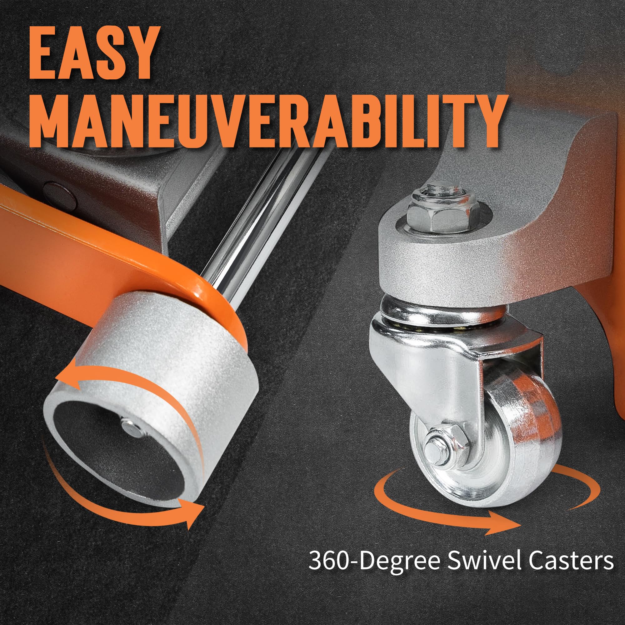 • Stable Maneuverability: Designed with a large lifting saddle, wide dual casters, and a built-in handle, the jack ensures stable support during lifting and effortless positioning across the workshop floor.