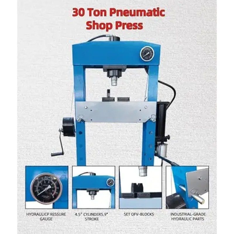 Our 30 ton H-frame pneumatic hydraulic shop press combines speed, durability, and affordability—perfectly solving pain points like operator fatigue and slow production in busy workshops.