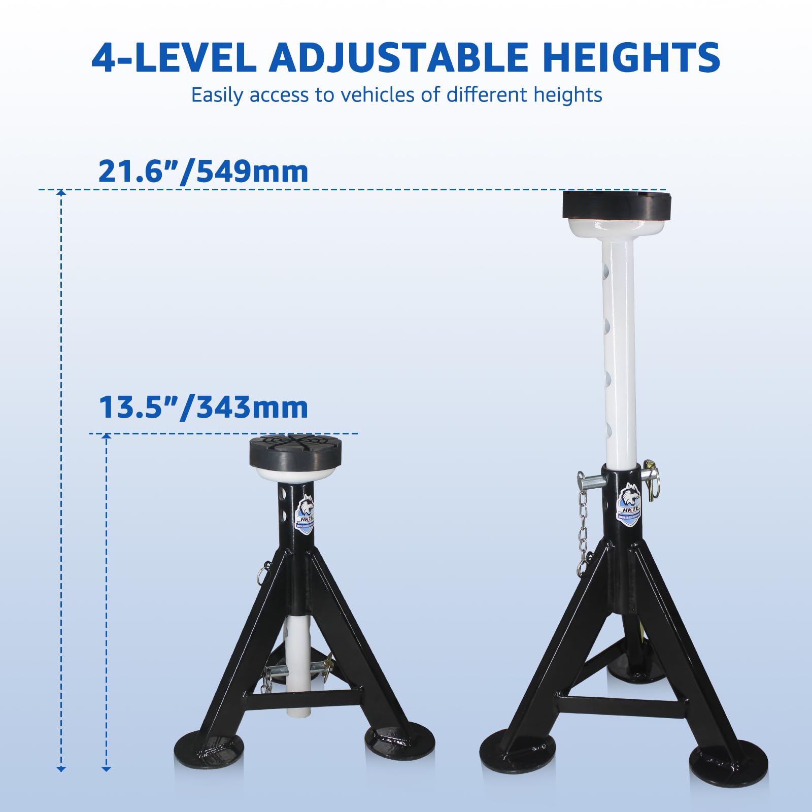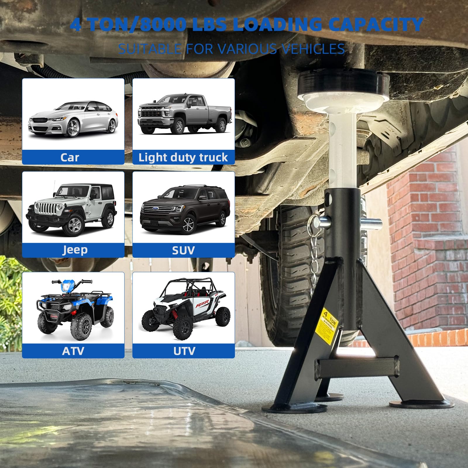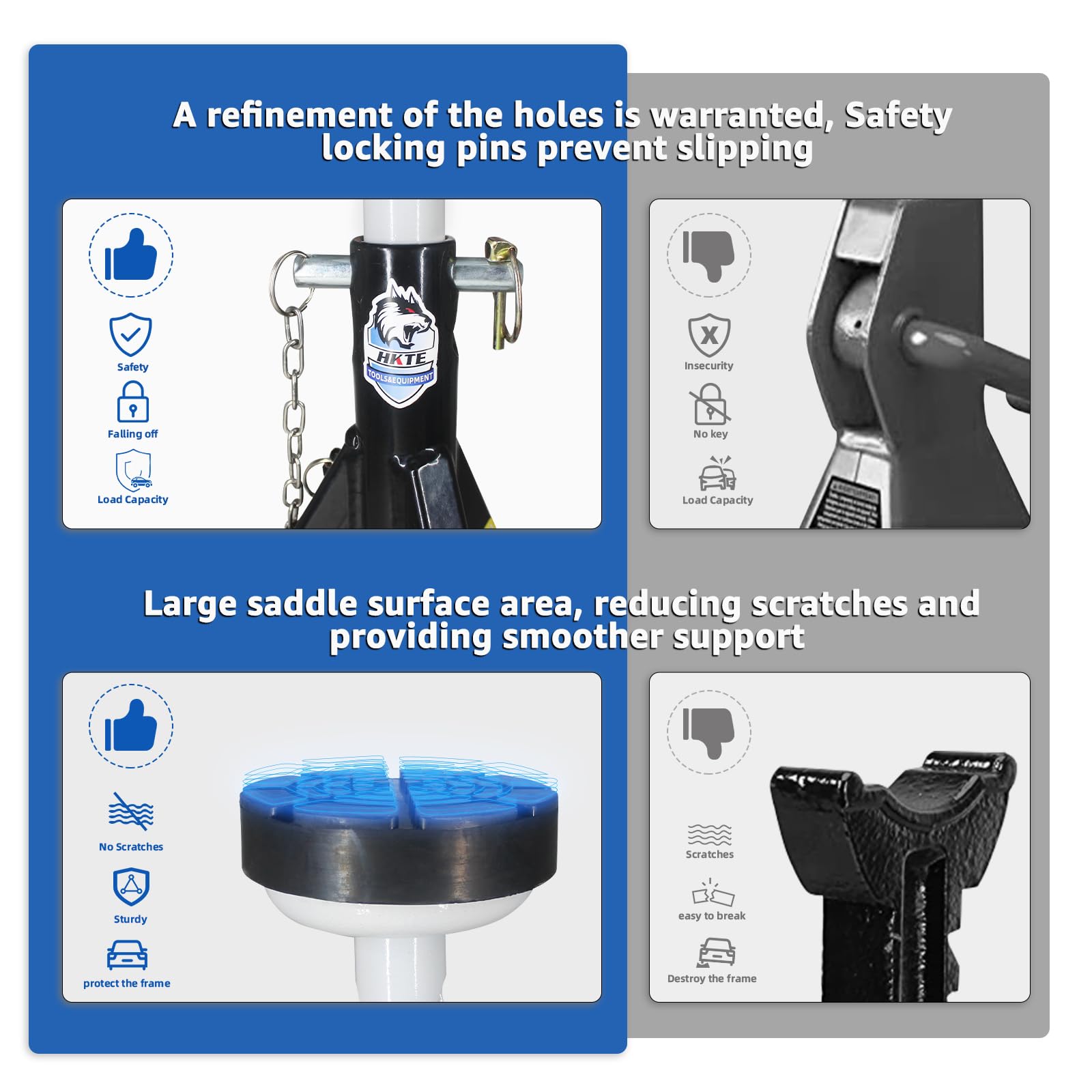 - Heavy-Duty Stability: Made from high-strength steel, these stands are built to last. The security locking pin provides an extra layer of safety, firmly securing your vehicle in place.