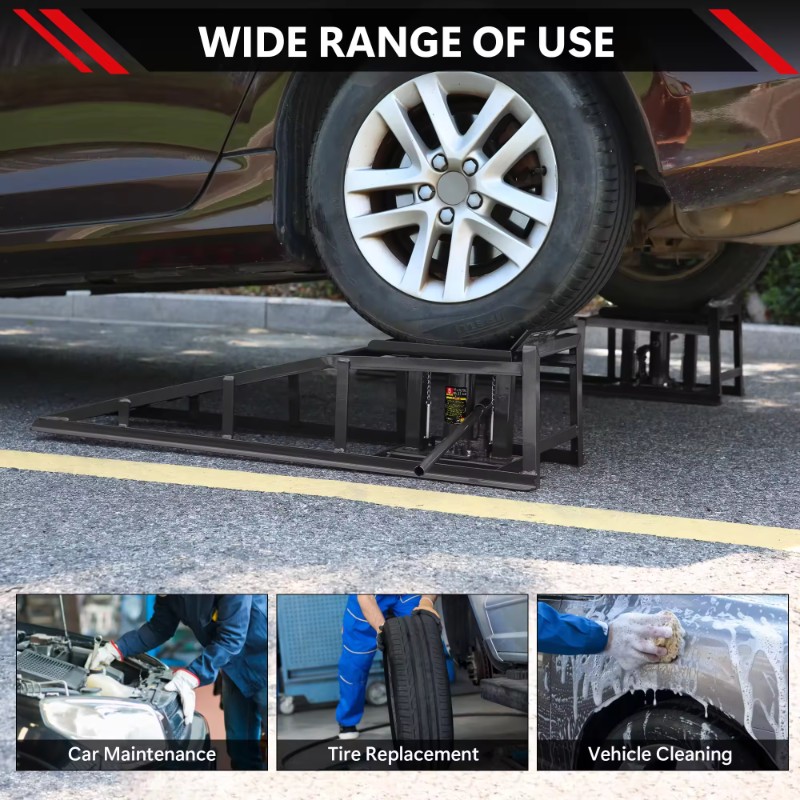 | Adjustability | Hydraulic with 10-35cm range – Customizes height for various vehicles, solving fixed-height frustrations. | Fixed incline – No adjustment, leading to compatibility issues with low-clearance cars. | Fixed low-profile angle – Great for sports cars but not versatile for trucks. | Hydraulic adjustable – Similar but lower max height (e.g., 6.25 inches), restricting access. |