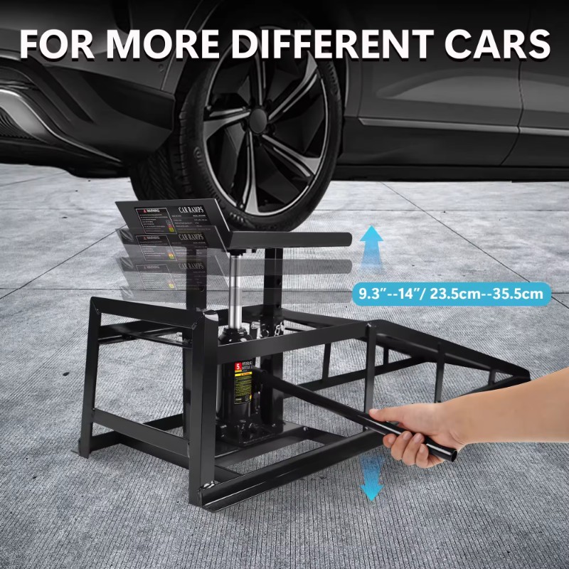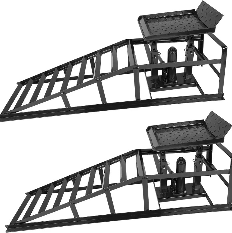 We compare our ramps against popular alternatives like RhinoRamps (plastic-based), Race Ramps (low-profile composite), and Black Widow Hydraulic Ramps (similar hydraulic design). Our product excels in heavy-duty applications for trucks and SUVs, solving issues such as slippage on uneven surfaces and fixed heights that restrict versatility. In contrast, competitors often fall short in capacity or durability for professional B2B use. Moreover, our reinforced steel frame ensures longevity, reducing replacement frequency—a common complaint with lighter materials.
