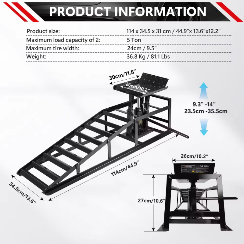 Our 5-ton heavy-duty portable hydraulic lift ramps feature precision engineering for optimal performance. Below, we outline key specifications to help you evaluate suitability for your B2B clients.