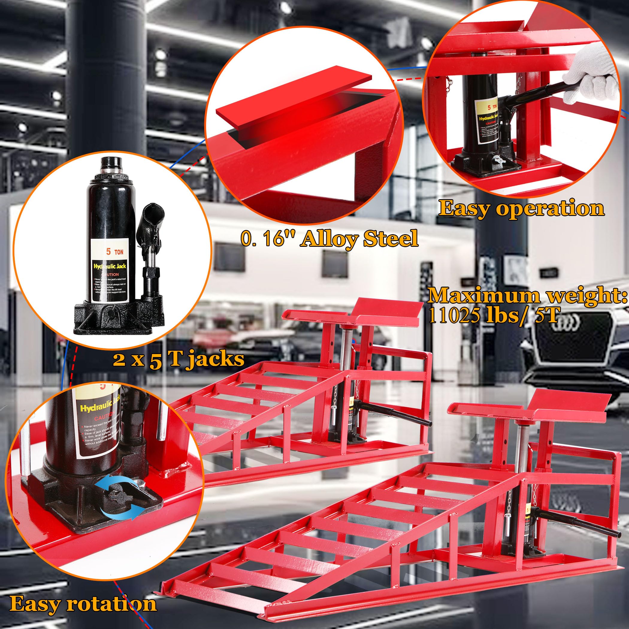 5 Ton Hydraulic Lift Ramps with Support Jack Heavy Duty Steel Car Ramps for Oil Change and Maintenance