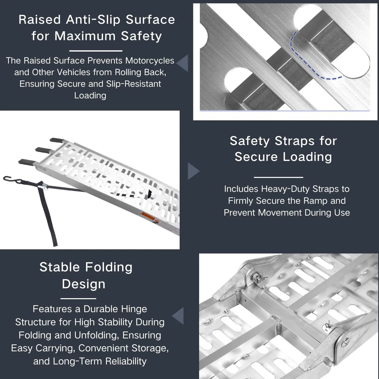 Portable Heavy-Duty Aluminum Plate Top Ramp for Motorcycles – Foldable Design for Easy Storage