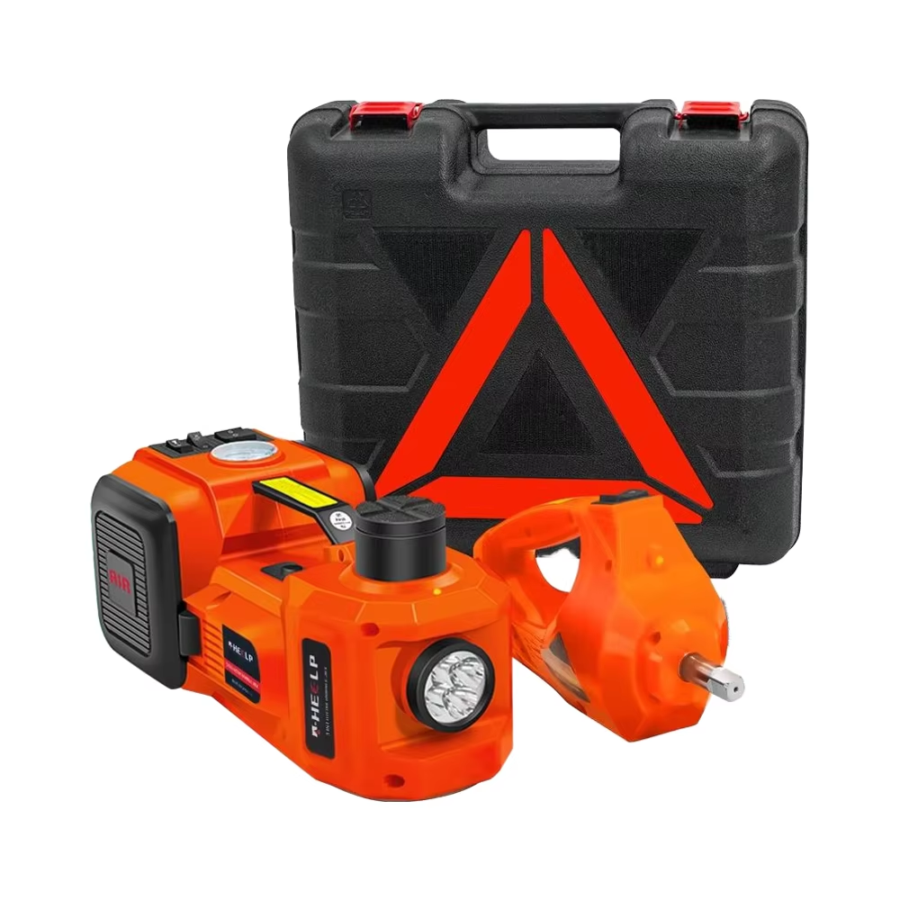 When the jack reaches its maximum height or exceeds its 5-ton load capacity, the smart overload protection system activates, automatically stopping the lift to prevent accidents. In emergencies, the included red warning triangle can be placed behind your vehicle as a caution sign. This electric car jack kit prioritizes the safety of both you and your car.