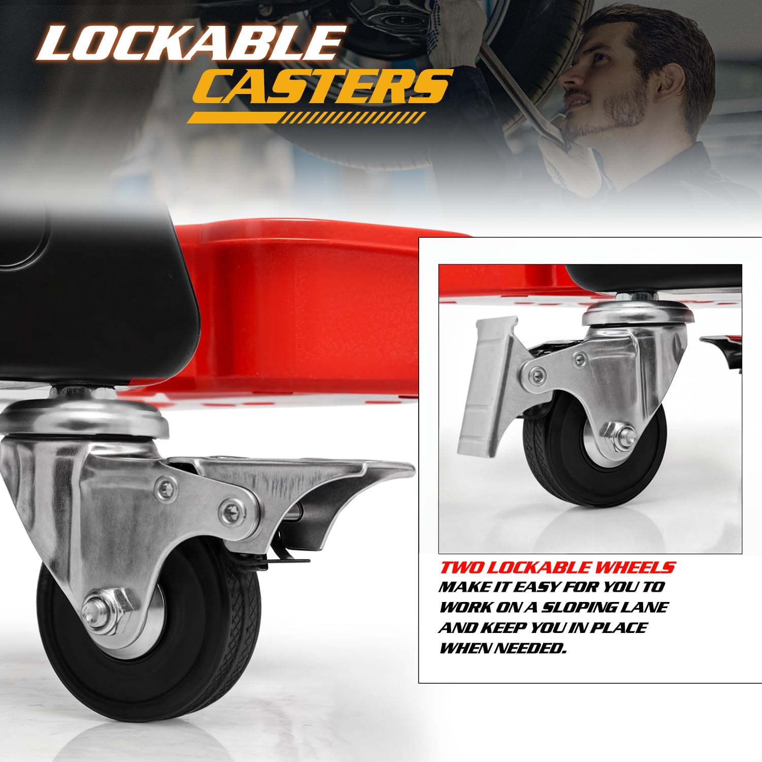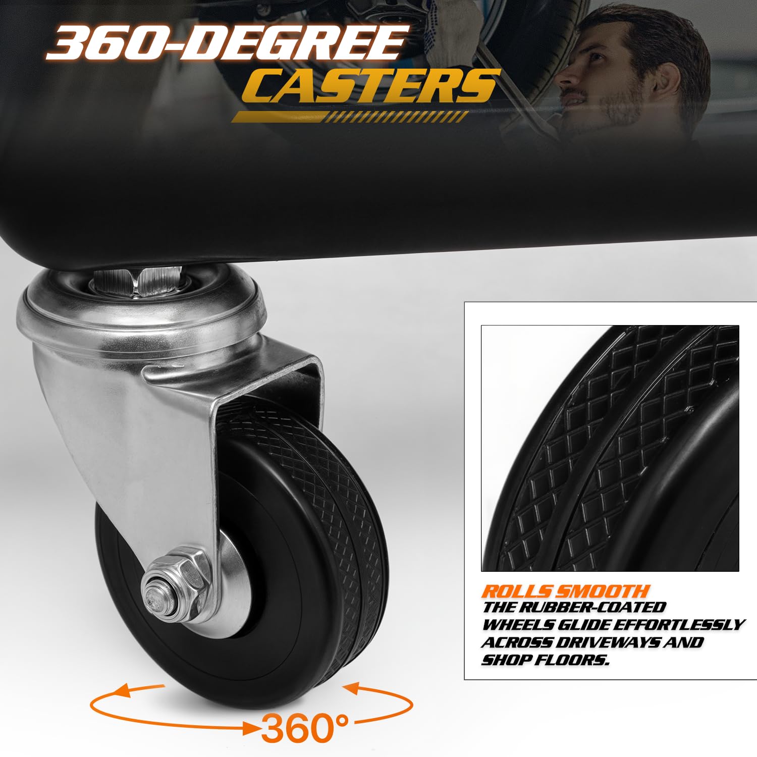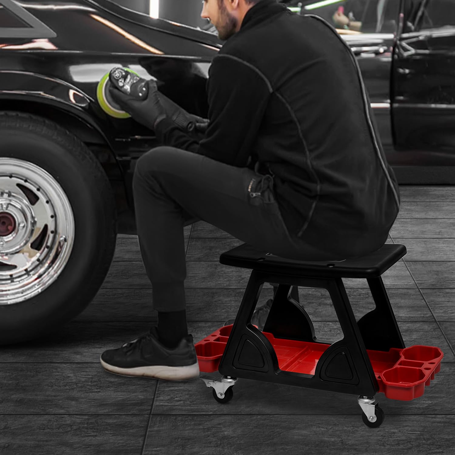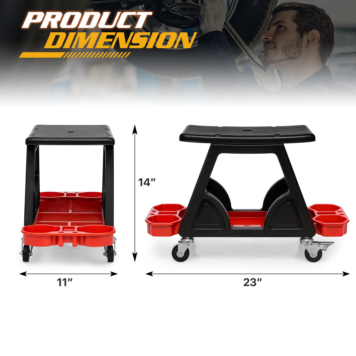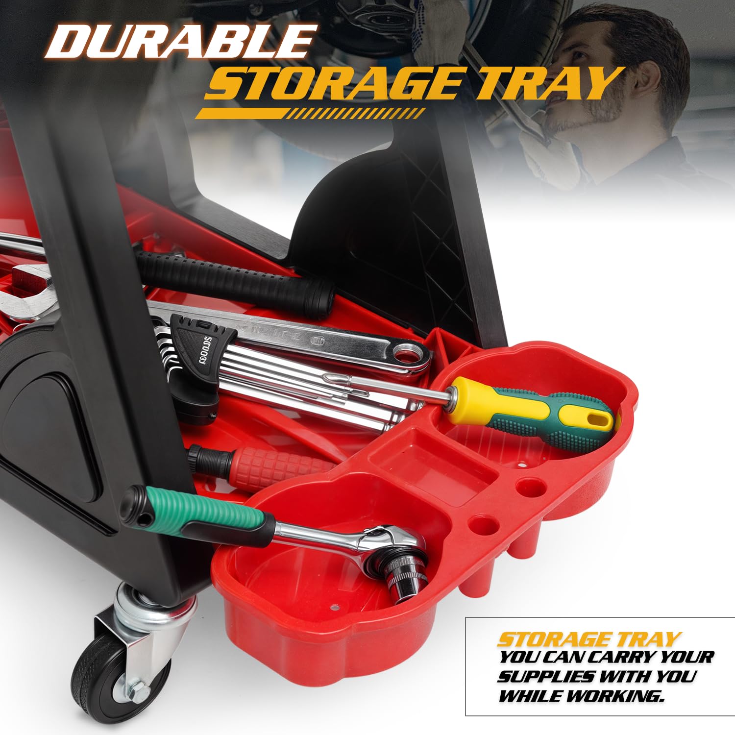 Garage Creeper Seat with Tool Holder - Rolling Mechanic Stool for Auto Repair TDE86-54112