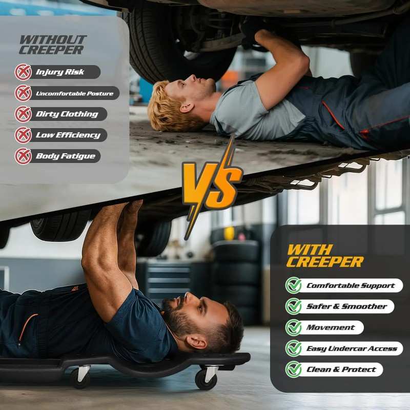 - Rugged Durability, Lightweight Portability: Constructed from heavy-duty blow-molded plastic, this creeper delivers exceptional strength and rigidity while remaining incredibly lightweight.It handles rigorous daily garage use without compromising ease of transport or storage.