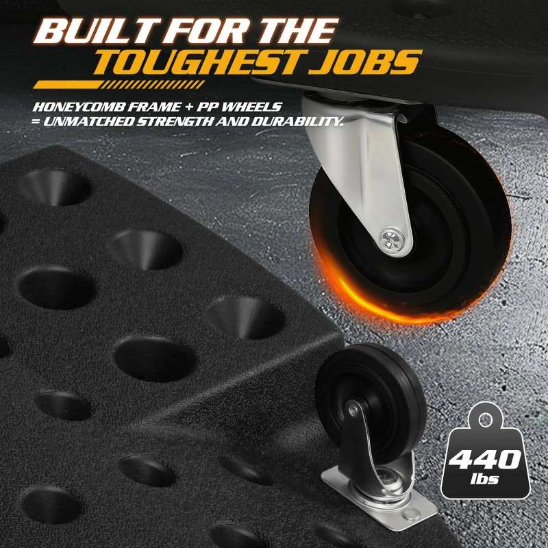 - Effortless Maneuverability: Six high-quality, smooth-rolling casters provide 360 swivel capability, allowing for swift, precise movement and easy gliding under vehicles, even in tight or cluttered workspaces.
