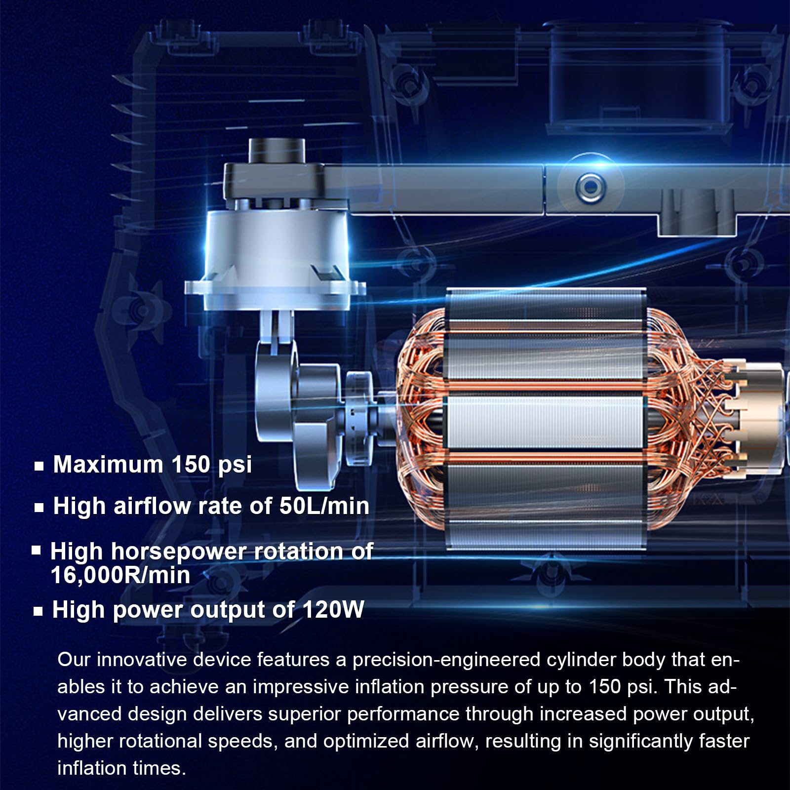 Portable Electric Tire Inflator 150PSI Wireless Air Compressor with LED Display WCQ49-2303